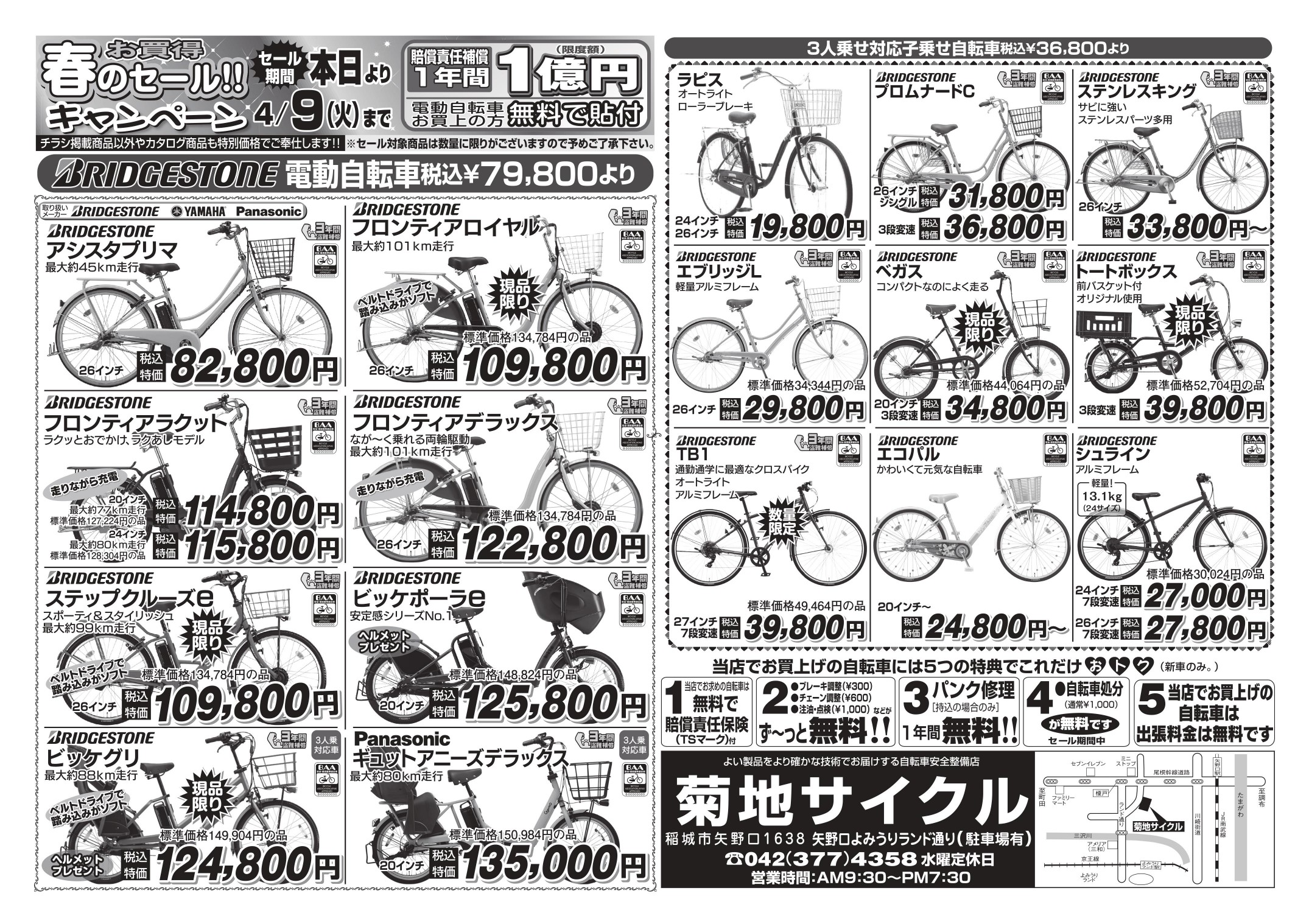 当店で新車自転車・電動自転車お買い上げの方には